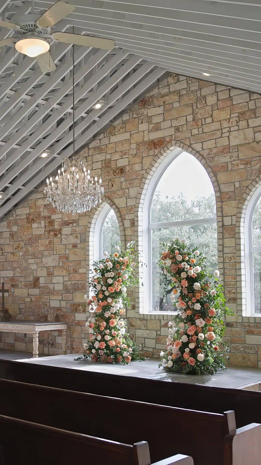These symmetrical pillars can be placed close together to create an arch, or placed farther apart to create a frame around your altar or head table. They are (relatively) easy to move as well; this task can be accomplished by a licensed & insured wedding coordinator within the same venue. If you'd like them to be moved to a separate location after the ceremony, our team will send you a quote.