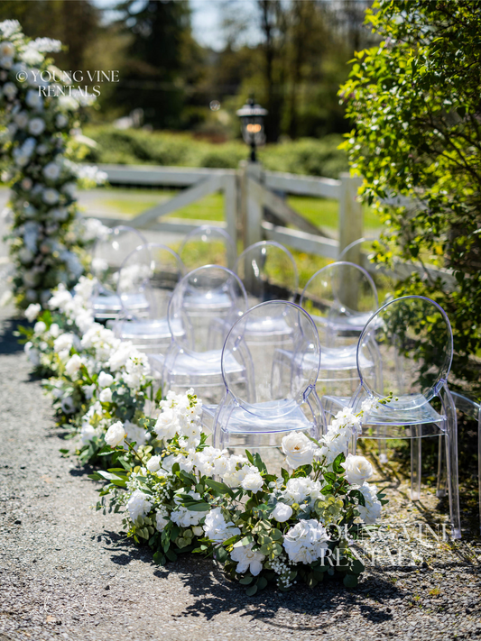 Our circular rental approach avoids the use of toxic, single-use floral foam and pesticide-sprayed flowers, and dramatically reduces the carbon footprint of your wedding ceremony decor.